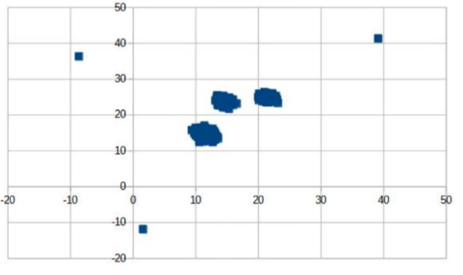 На графике отлично видно три выброса (см. условие). Однако тяжело обозначить условия для точек кластеров и выбросов.