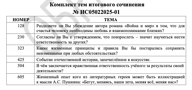 Какие темы итогового сочинения встретятся в 2025 году